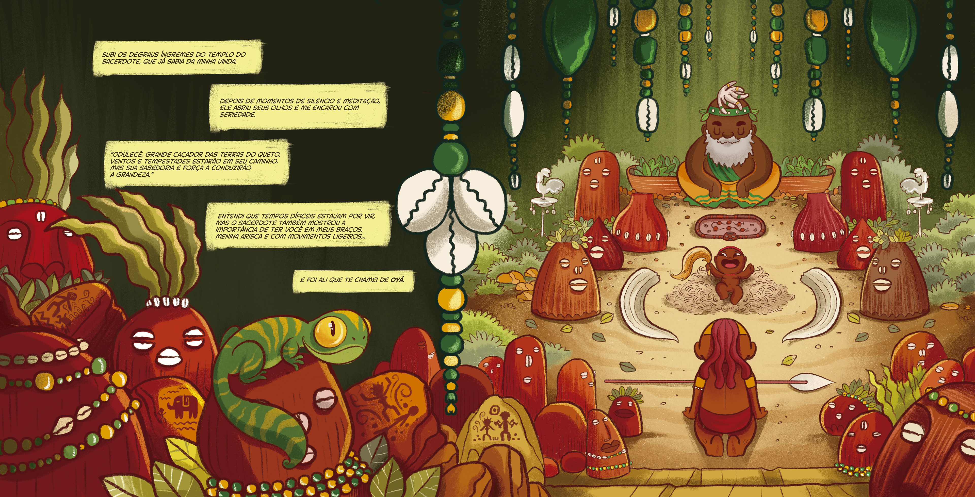 Um livro que fala sobre força, escuta da natureza, passagem entre mundos e amadurecimento, usando uma linguagem acessível para crianças, mas profundamente conectada à mitologia afro-brasileira.