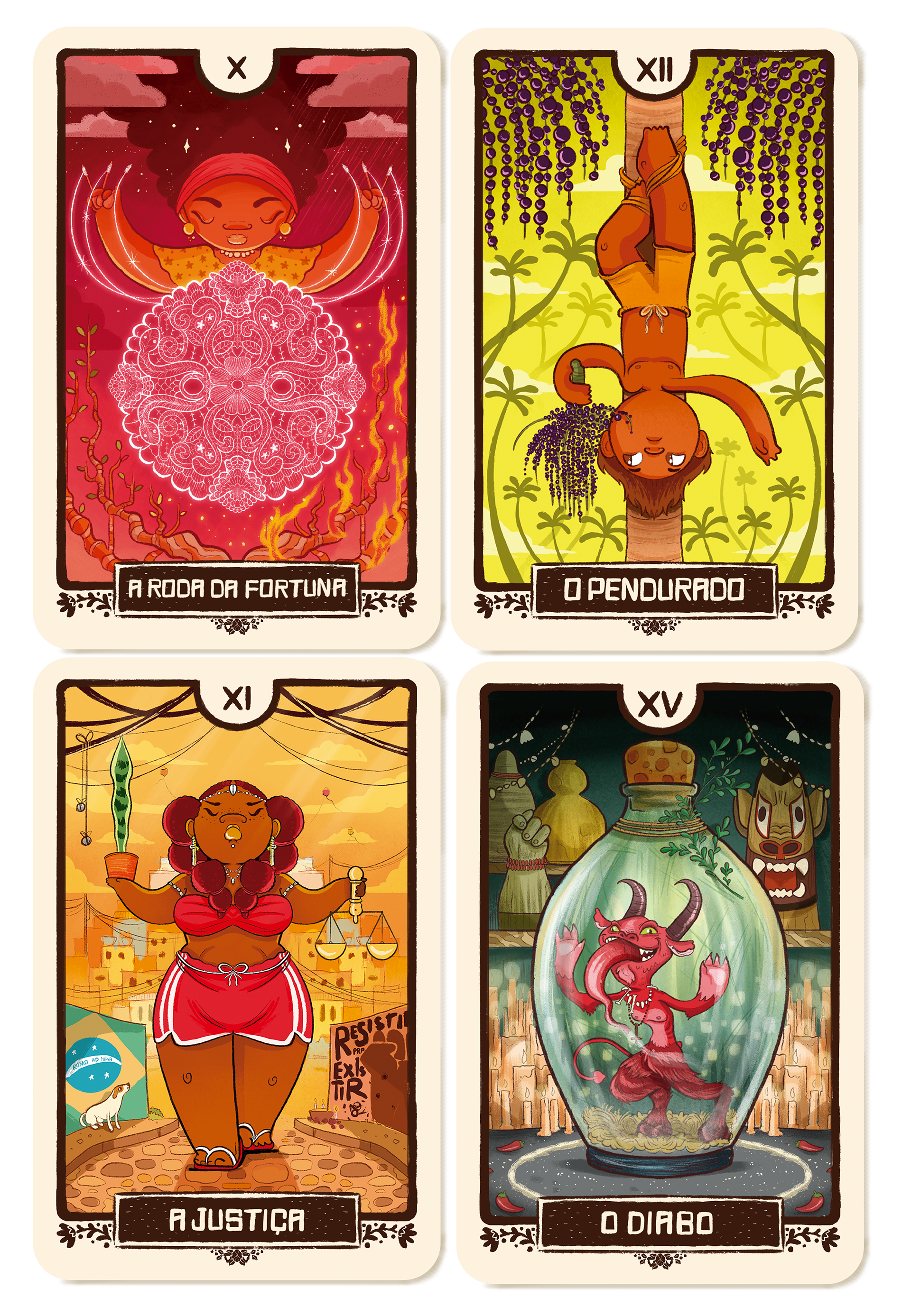 O Tarô Raiz é um projeto criado por mim, inspirado na rica herança cultural do Brasil e nos elementos indígenas e afro-brasileiros que são a base da identidade brasileira. São 22 cartas dos Arcanos Maiores, criados com base no Tarot de Marselha e de Rider Waite, porém utilizando cenas, divindades e personagens que mostram a diversidade e as raízes do nosso país. Foi muito prazeroso criar, em cada carta, um elemento diferente que trouxesse a essência das nossas origens.
